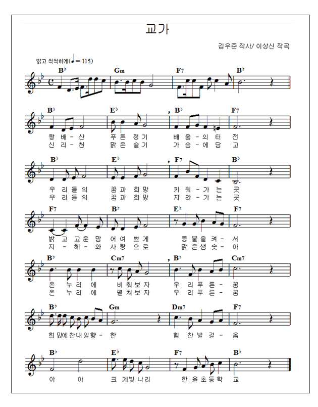 한율초등학교 교가